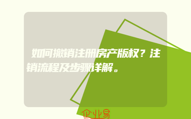 - 如何撤销注册房产版权?注销流程及步骤详解。