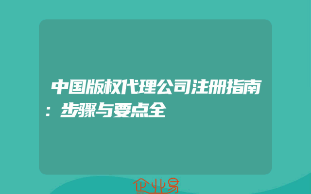 - 中国版权代理公司注册指南:步骤与要点全