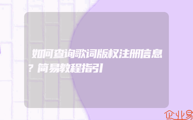 - 如何查询歌词版权注册信息?简易教程指引一、了解版权注册的重要性在音乐创作领域,歌词的版权保护至关重要。版权注册不仅可以保护创作者的权益,还能为歌曲的传播和使用提供法律保障。因此,查询歌词版权注册信息对于避免侵权纠纷具有重要意义。二、选择正确