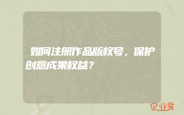- 如何注册作品版权号,保护创意成果权益?