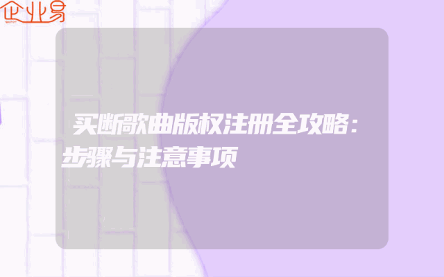 - 买断歌曲版权注册全攻略:步骤与注意事项一、了解歌曲版权及其重要性在音乐产业中,歌曲版权是保护创作者权益的关键。买断歌曲版权意味着您获得了该歌曲的所有权利,包括复制、发行、表演和展示等。为了确保您的投资安全并避免未来的法律纠纷,买断歌曲版权后