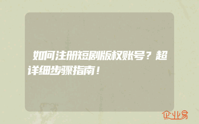- 如何注册短剧版权账号?超详细步骤指南!