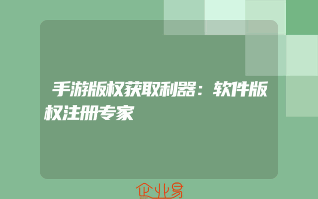 - 手游版权获取利器:软件版权注册专家