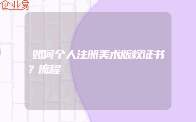 - 如何个人注册美术版权证书?流程详解一、了解美术版权注册的重要性在艺术创作领域,保护自己的创作成果是至关重要的。美术版权证书是证明作者对其美术作品享有著作权的有效凭证。注册美术版权,不仅可以保护创作者的合法权益,还能为作品的商业利用和价值实现