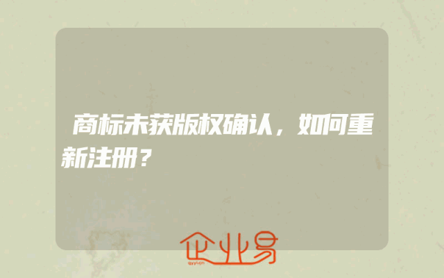 - 商标未获版权确认,如何重新注册?一、了解现状当前,许多企业在注册商标时面临版权确认的问题。当商标未能获得版权确认时,意味着该商标可能存在侵权风险或与他人的版权作品有所冲突。对此,首先需要详细了解当前商标的版权状况,查明原因,为何未获版权确认