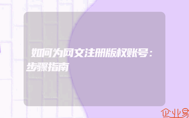 - 如何为网文注册版权账号:步骤指南