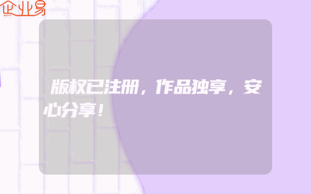- 版权已注册,作品独享,安心分享!一、版权注册的保障在当今社会,知识产权的保护日益受到重视,版权注册便是其中的重要环节。当作品的版权得以注册,作者便拥有了法律的保障,确保自己的创作成果不被他人非法盗用或复制。这一机制为创作者提供了一个安全的环