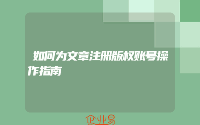 - 注册版权账号操作指南了解版权注册的重要性在当今信息爆炸的时代,知识产权的保护显得尤为重要。版权作为知识产权的一种,对于创作者来说,是其智力成果的保障。注册版权账号,不仅可以保护原创作品,还能避免侵权纠纷,维护创作者的合法权益。准备工