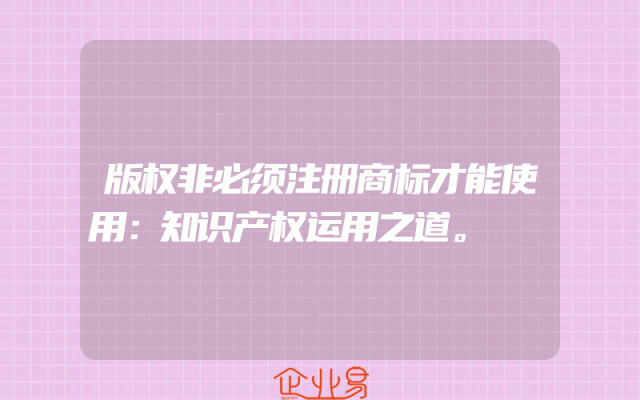- 版权非必须注册商标才能使用:知识产权运用之道。