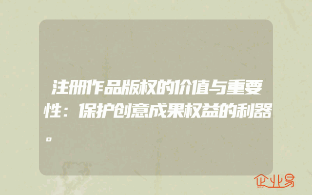 - 注册作品版权的价值与重要性:保护创意成果权益的利器。