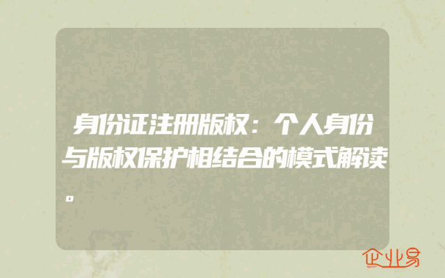 - 身份证注册版权:个人身份与版权保护相结合的模式解读。