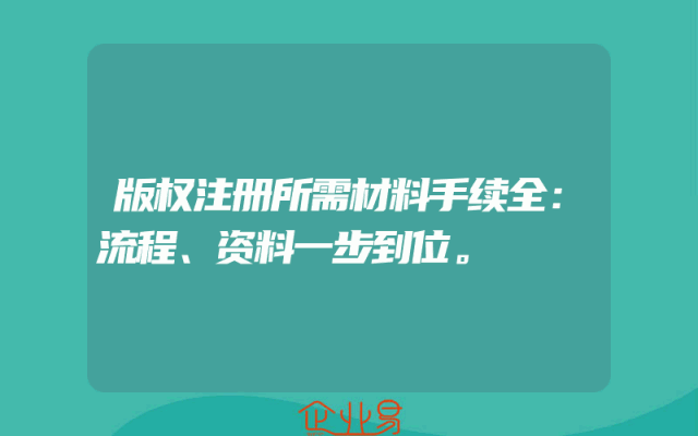 - 版权注册所需材料手续全:流程、资料一步到位。