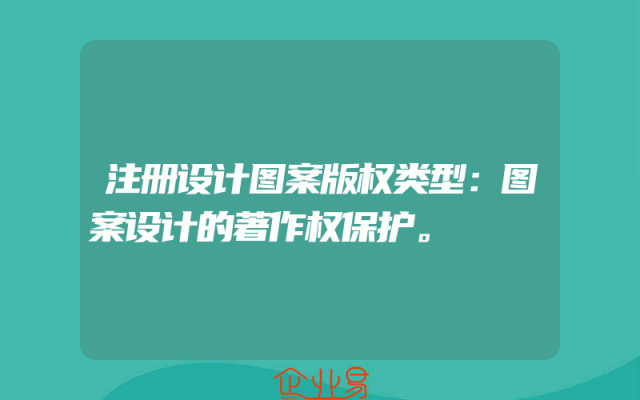 - 注册设计图案版权类型:图案设计的著作权保护。