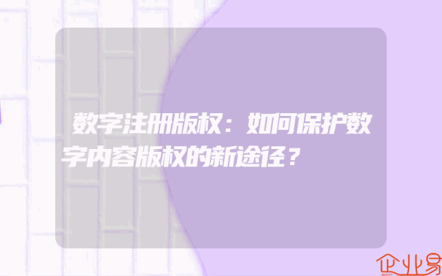 - 数字注册版权:如何保护数字内容版权的新途径?
