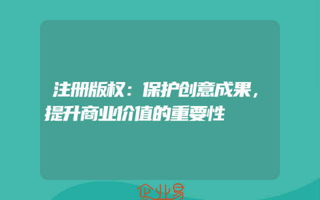 - 注册版权:保护创意成果,提升商业价值的重要性