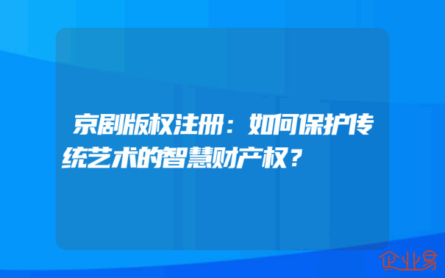 - 京剧版权注册:如何保护传统艺术的智慧财产权?一、京剧版权注册的必要性京剧作为中国传统艺术的瑰宝,蕴含着丰富的智慧财产。随着现代社会的快速发展,京剧的传承与保护面临着新的挑战。版权注册是保护京剧智慧财产权的重要手段之一。通过版权注册,