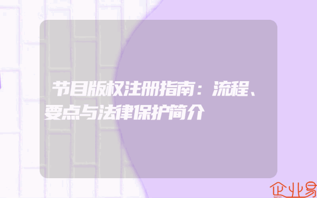 - 节目版权注册指南:流程、要点与法律保护简介一、节目版权注册流程在当今数字化时代,保护原创节目版权至关重要。节目版权注册是维护创作者权益的重要步骤。节目版权注册流程通常包括以下几个步骤:1.提交申请:创作者需向相关版权机构提交节目版权注册申请