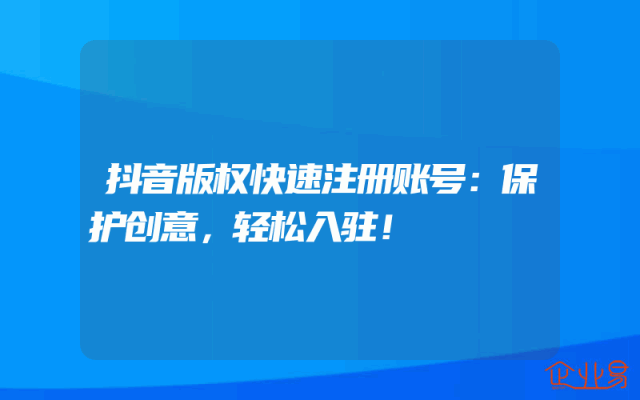 - 抖音版权快速注册账号:保护创意,轻松入驻!