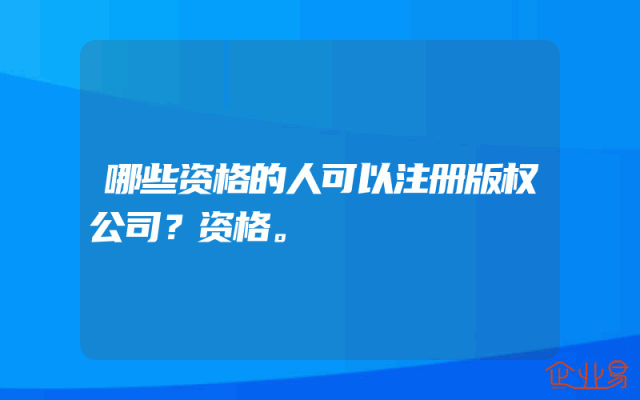 - 哪些资格的人可以注册版权公司?资格详解一、引言随着知识产权领域的发展和重要性不断提升,注册版权公司成为越来越多人的选择。但是,哪些资格的人可以注册版权公司呢?本文将详细解析这一问题,帮助读者从多个角度理解相关资格要求。二、法律资质首先,注册