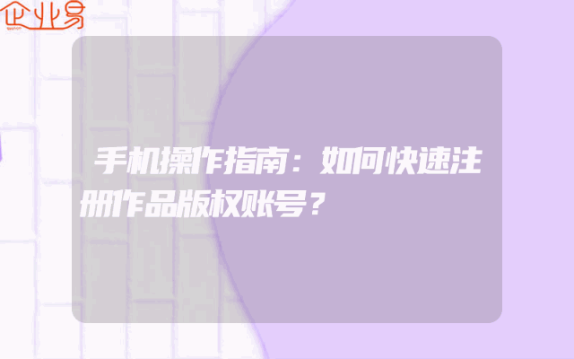 - 手机操作指南:如何快速注册作品版权账号?一、了解作品版权注册的重要性随着数字时代的快速发展,智能手机已经成为我们日常生活的重要组成部分。创作者通过手机上的各种创意表达,创作出了许多优秀的作品。为了保护自己的创意成果,注册作品版权账号显得尤为