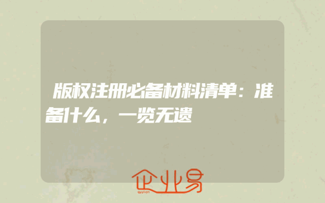 - 注册版权需准备的资料清单,常见问题详解一、注册版权需准备的资料清单想要成功注册版权,首先需要准备齐全的资料清单。通常包括以下几项:一是申请人的身份证明,无论是个人还是企业,都需要提供有效的身份证件或公司证明文件;二是需要版权保护的作品信息,