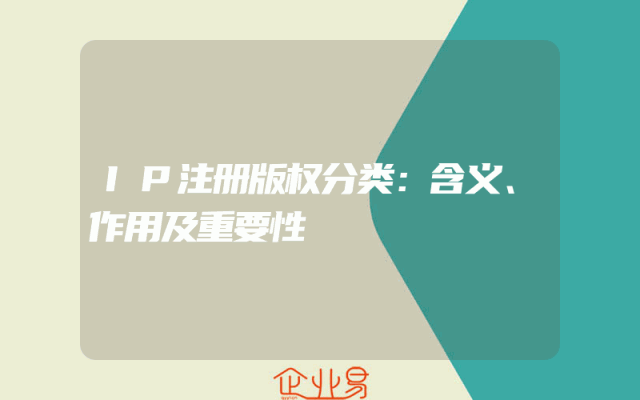 - IP注册版权分类详解:含义、作用及重要性一、IP注册版权的含义在当今数字化时代,知识产权(IP)的保护日益受到重视。IP注册版权是指对创造性智力成果所享有的专有权利进行注册登记,以获得法律上的承认和保护。这包括了文学、艺术、科学、技术等领域