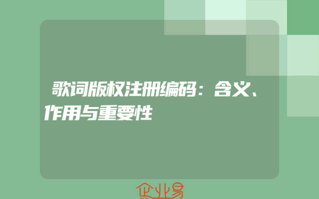 - 歌词版权注册编码详解:含义、作用与重要性一、歌词版权的含义在现代社会,知识产权的重要性日益凸显,歌词版权作为其中的一部分,指的是歌曲作者对歌词所享有的专有权利。这包括对歌词的复制权、发行权、表演权、信息网络传播权等一系列权益的集合。