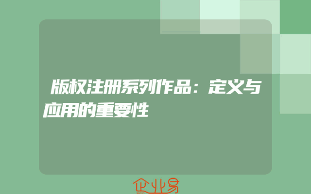 - 版权注册系列作品详解:定义与应用的重要性一、版权与版权注册系列作品的定义在现代社会,知识产权的保护日益受到重视,其中版权作为知识产权的重要组成部分,对于保护创作者的原创作品具有重要意义。版权,又称为著作权,是指创作者对其创作的文学、艺术和科