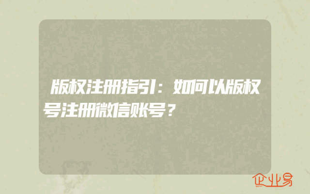 - 版权注册指引:如何以版权号注册微信账号?