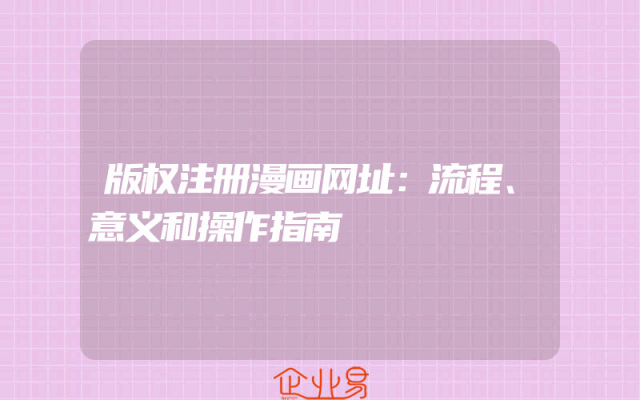 - 版权注册漫画网址:流程、意义和操作指南一、漫画版权注册的重要性随着文化产业的发展,漫画作为一种受欢迎的艺术形式,其版权问题日益受到重视。版权注册是对原创作品的一种法律保护,能够确保创作者的权益得到尊重和维护。对于漫画创作者而言,注册版权不仅