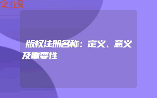- 版权注册名称:定义、意义及重要性解析一、版权注册名称的定义版权注册名称,指的是在著作权法中为某一作品所注册的专有名称。这既可以是文学作品、艺术作品、音乐作品、电影、软件代码等创意作品的标题或名称,也可以是这些作品作者、创作者、所有人的商业标
