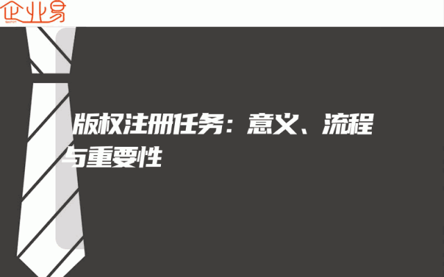 - 版权注册任务解析:意义、流程与重要性一、版权注册的意义在当今信息化社会,知识产权的保护愈发重要。版权作为知识产权的一种,是指创作者对其创作的文学、艺术和科学作品所享有的专有权利。版权注册则是保护版权权益的重要手段,它赋予了创作者对其作品的独