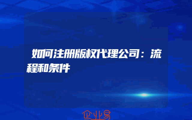 - 如何注册版权代理公司:流程和条件详解一、了解版权代理公司的定义及业务范围版权代理公司是为版权所有者提供法律、市场、管理等方面服务的专业机构。其主要业务包括版权登记、版权转让、版权维权等。在注册前,需明确公司的业务范围及服务定位。二、注册版权
