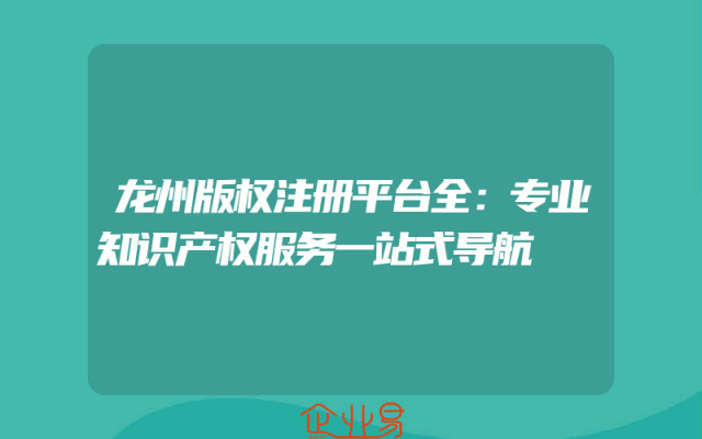 - 龙州版权注册平台全:专业知识产权服务一站式导航