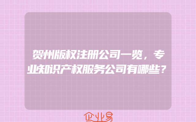 - 贺州版权注册公司一览,专业知识产权服务公司有哪些?