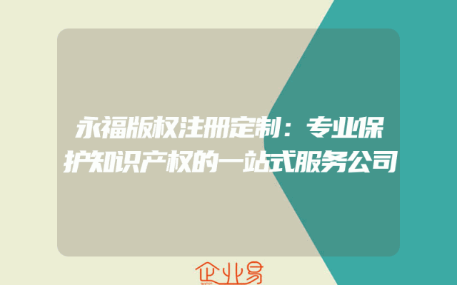 - 永福版权注册定制:专业保护知识产权的一站式服务公司