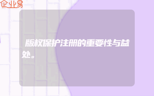 - 版权保护注册的重要性与益处解析一、版权保护注册的重要性在当今信息化社会,知识产权的保护显得尤为重要,而版权保护作为知识产权的重要组成部分,更是受到广泛关注。版权保护注册的重要性体现在多个方面。首先,版权保护注册能够明确作品的权属关系。在文学