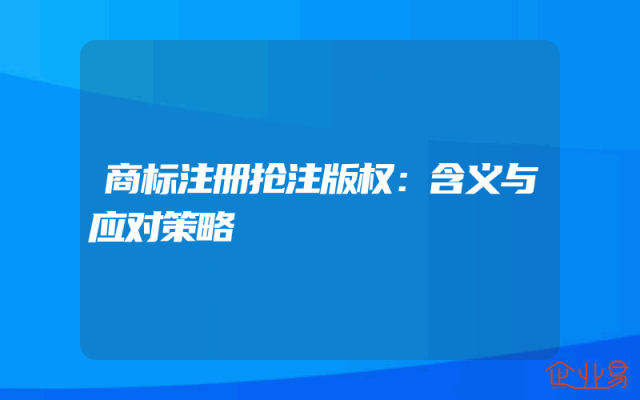 - 商标注册抢注背后的版权意义解析一、商标注册与抢注现象在商业竞争日益激烈的今天,商标注册成为企业保护自身品牌的重要手段。然而,在此过程中,抢注现象屡见不鲜。一些企业或个人为了独占市场资源,会提前注册尚未广泛使用的商标,这种行为不仅对其他市场主