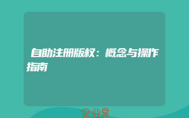 - 自助注册版权:概念解析与操作指南一、版权注册的概念解析在当今信息化社会,知识产权的保护日益受到重视,版权作为知识产权的重要组成部分,其注册保护显得尤为重要。自助注册版权,即作者或其他权利人通过线上平台,自行完成版权登记的一种便捷方式。版权注