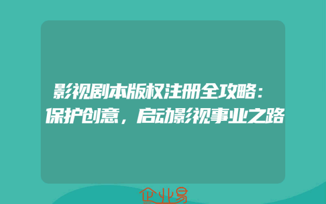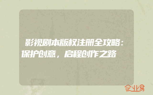 - 影视剧本版权注册全攻略:保护创意,启动影视事业之路