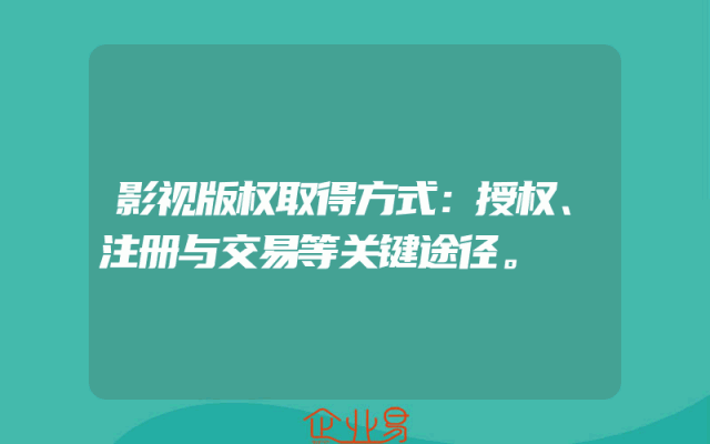 - 影视版权取得方式:授权、注册与交易等关键途径。