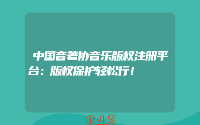 - 中国音著协音乐版权注册平台:版权保护轻松行!