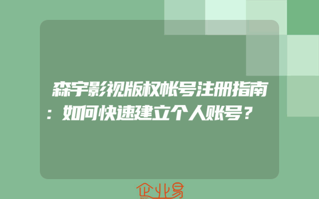 - 森宇影视版权帐号注册指南:如何快速建立个人账号?