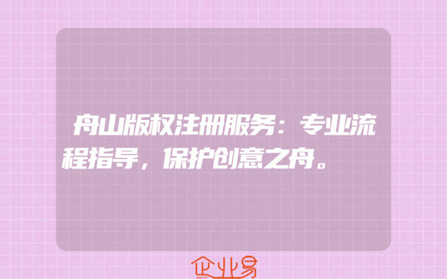 - 舟山版权注册服务:专业流程指导,保护创意之舟。
