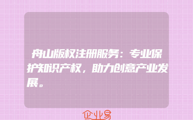 - 舟山版权注册服务:专业保护知识产权,助力创意产业发展。