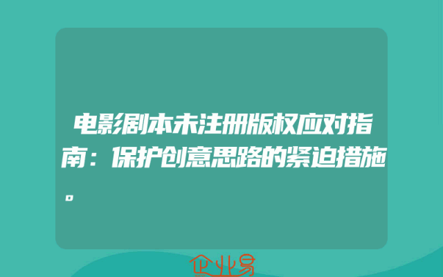 - 电影剧本未注册版权应对指南:保护创意思路的紧迫措施。