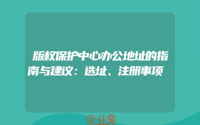 - 版权保护中心办公地址的指南与建议:选址、注册事项