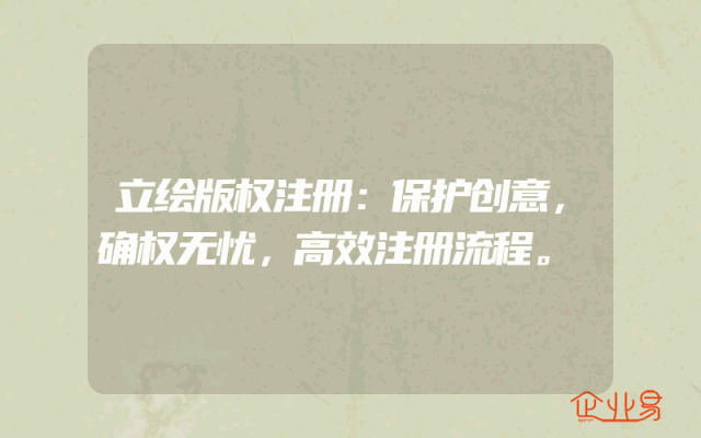 - 版权注册:保护创意,确权无忧,高效注册流程解析一、版权的重要性在当今创意产业蓬勃发展的时代,知识产权的保护显得尤为重要。版权作为知识产权的重要组成部分,对于保护原创作品,鼓励创新创作具有不可替代的作用。立绘版权注册是一种有效的法律手段,能够