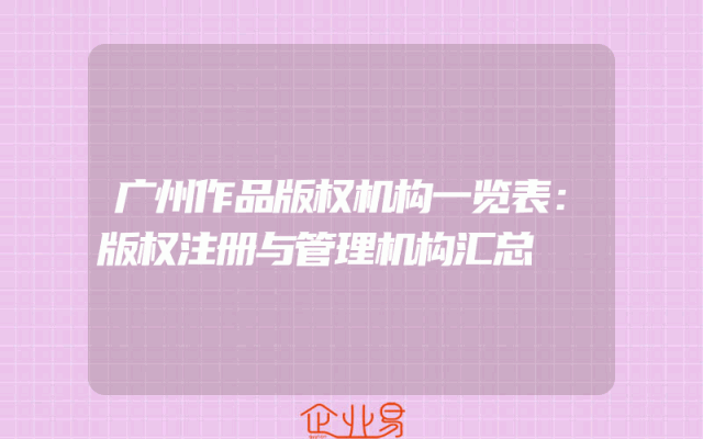 - 广州作品版权机构一览表:版权注册与管理机构汇总