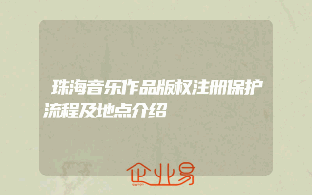 - 珠海音乐作品版权注册保护流程及地点介绍